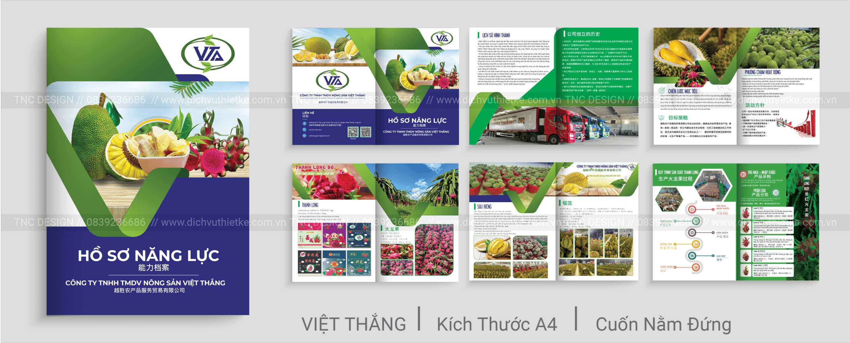 Số trang thiết kế cuốn hồ sơ năng lực công ty nông sản việt thắng : 40 Trang song ngữ