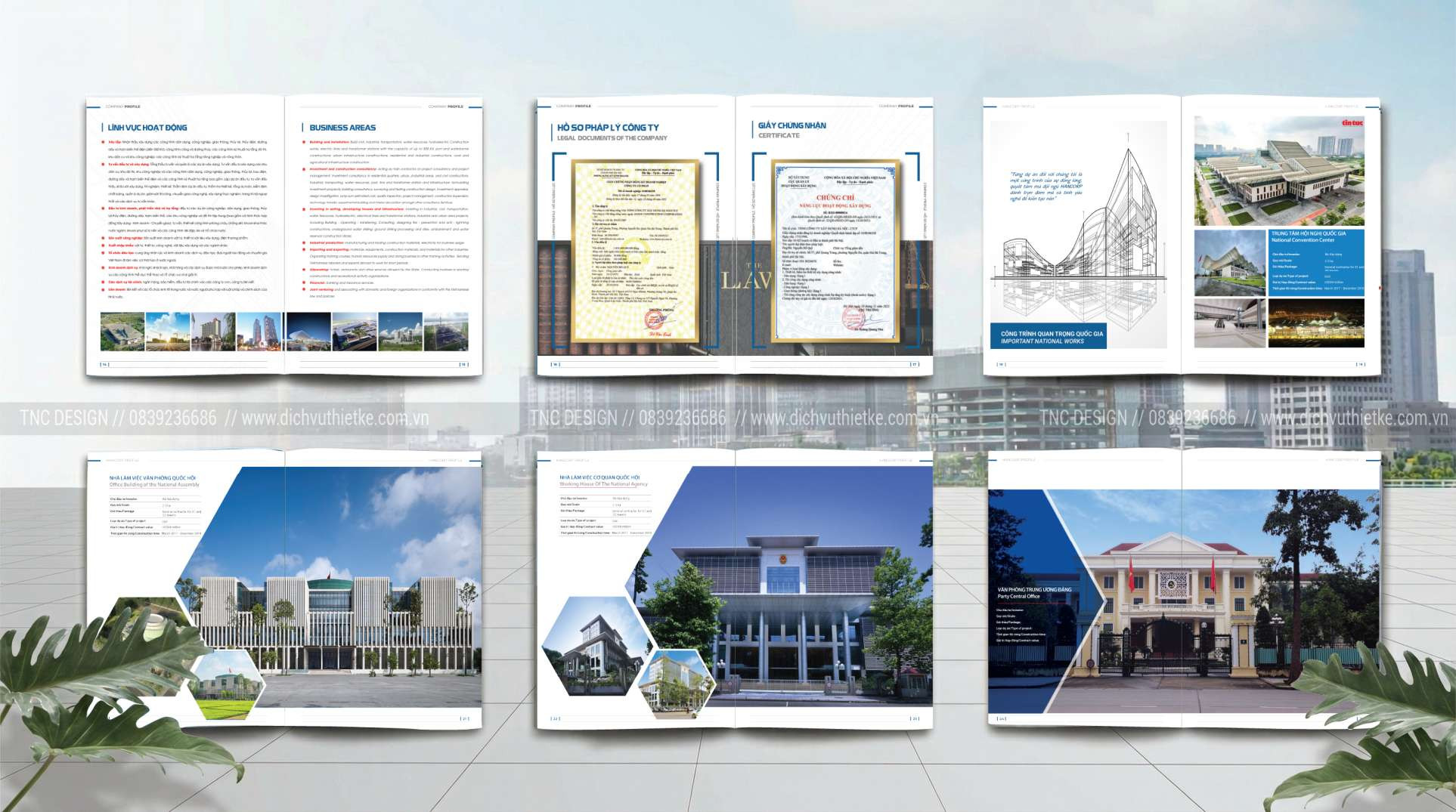 Chúng tôi cung cấp giải pháp thiết kế hồ sơ năng lực công ty xây dựng trọn gói, từ tư vấn, thiết kế đến hoàn thiện file in ấn, đảm bảo tiến độ và chất lượng cho các dự án lớn.
