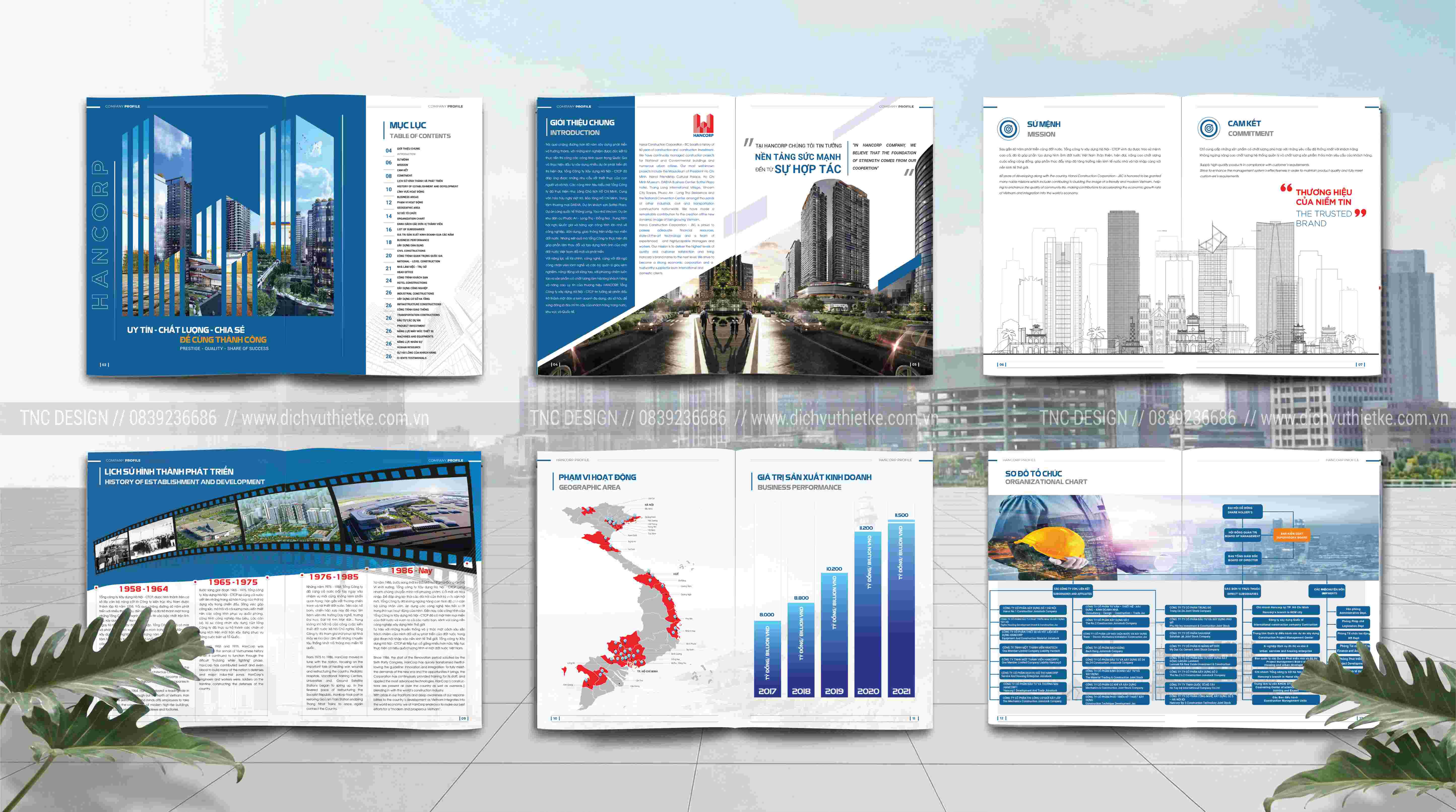 Chúng tôi thực hiện thiết kế hồ sơ năng lực cho Tổng Công ty Xây dựng Hà Nội (HANCORP) – doanh nghiệp có hơn 60 năm kinh nghiệm trong lĩnh vực xây dựng.