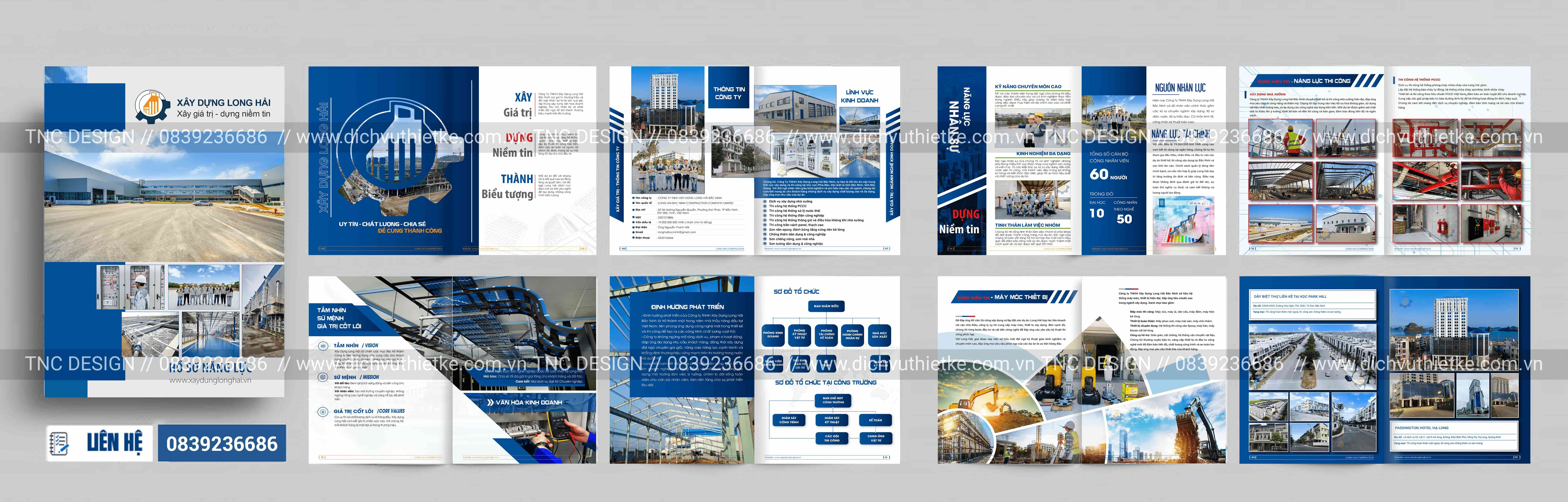 Mỗi bộ hồ sơ năng lực được TNC Design thiết kế với phong cách hiện đại, bố cục khoa học, hình ảnh sắc nét, màu sắc đồng bộ thương hiệu.